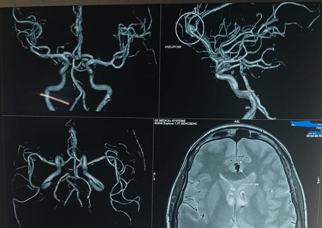 An emergency endovascular coiling procedure was performed to occlude the ruptured aneurysm — preserving cerebral circulation while preventing rebleed.